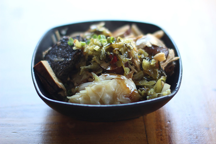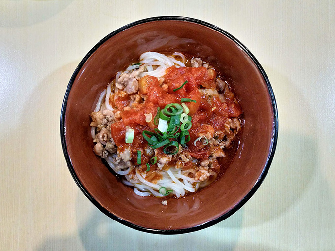 단 하나의 메뉴만 파는 곳으로 메뉴판도 없는 집입니다. 부드러운 면발과 새콤달콤한 국물위에 잘게 찢은 죽순과 소금에 절인 곱창을 얹어 나오는데 그 맛이 일품입니다.