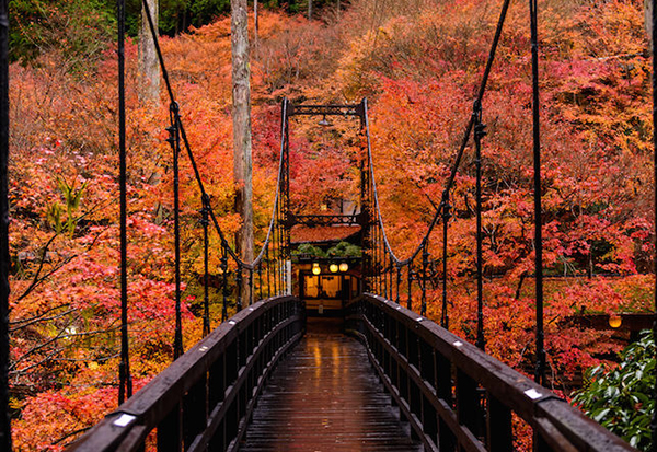 봄에는 벛꽃으로 겨울에는 흰 눈으로 뒤덮여 모든 계절이 아름답지만 단풍에 물든 도게츠 교는 어떤 계절보다 환상적입니다.