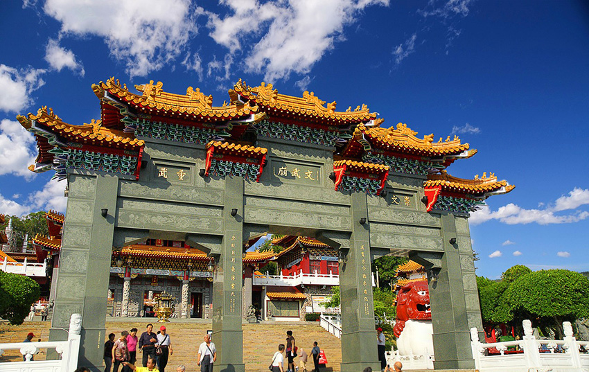 공자와 관공을 기리는 곳으로 구조는 장엄하며 산비탈 연못 근처에 지어져 주변 경관도 수려합니다. 정문의 아치를 지나서 올라가면 만난게 되는 장엄한 사찰이 아름답습니다.
