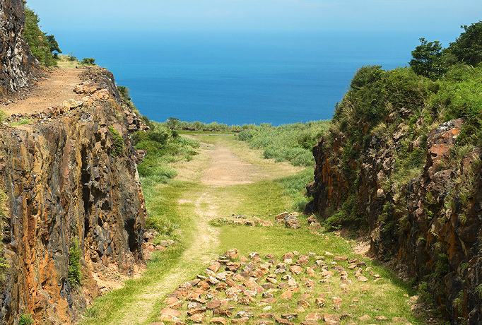 이 황금물의 시작점은 황금 폭포가 생성되는 산 안쪽으로 비가 많이 와도 폭포의 수량은 거의 비슷합니다. 바다를 바라보면 마치 그늘에 별이 비친듯하다 해서 인양하이라고 불립니다.
