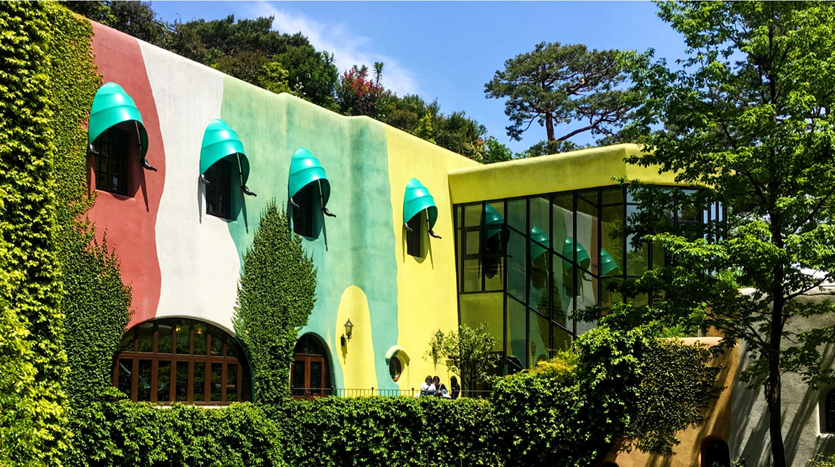 미야자키 하야오 감독이 직접 디자인하여 만든 미술관으로 유명하며 도토로가 맞이해 주는 입구를 지나서 들어가게 됩니다.