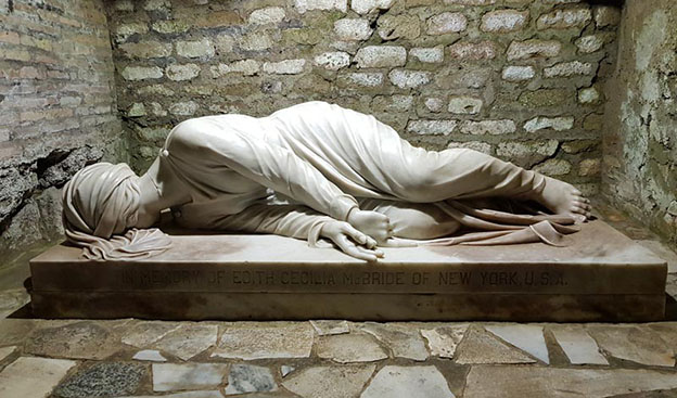 이곳에서 발굴된 성녀 체칠리아의 시신은 트라스테베레에 있는 산타 체칠리아 인 트레스테베레 성당에 안치되어 있으며 그 자리에는 그 모습 그대로 자리한 조각상을 볼 수 있습니다.