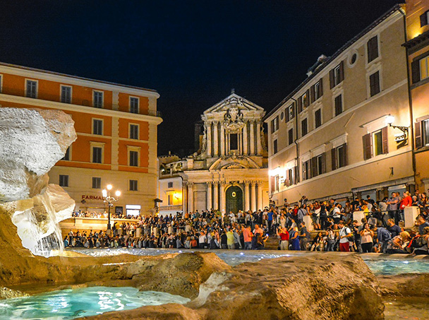 트레비 분수의 야경은 무척 아름답기 때문에 해질 무렵 그 주변에서 식사를 하고 트레비 분수의 야경을 감상하는 것도 좋습니다.