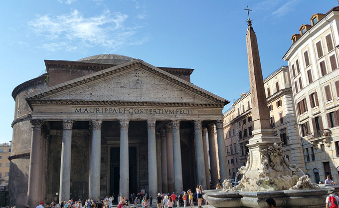 거의 원형 그대로의 모습을 유지하고 있는 유일한 고대 로마 시대의 건축물로 아그리파가 설계한 건축입니다. 콜로세움과 바티칸 그리고 판테온을 보았다면 로마를 모두 보았다고 말할 수 있을 정도로 유명한 건축물입니다.