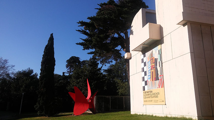 바르셀로네타에서 몬주익으로 가는 케이블카를 타고 몬주익 성에 내려서 갈 수도 있으며, 지하철을 타고 푸니쿨라로 환승해서 갈 수 도 있습니다. 몬주익 언덕 어디쯤에 내려 초록 초록한 나무들이 있는 길을 따라가다 보면 푸른 하늘과 대조되는 새하얀 미술관을 만나게 됩니다.
