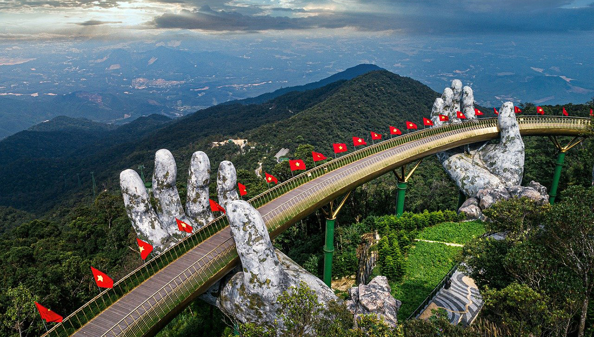 골든 브리지는 다낭에서 가장 핫한 명소 중 하나로 해발 3,280미터 높이에서 다낭의 아름다운 자연경관을 감상할 수 있는 스카이워크입니다.