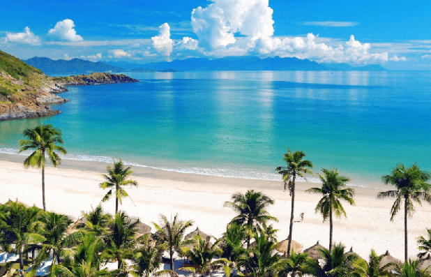끝도 없이 펼쳐진 새하얀 백사장은 길이가 900m에 달하며 주변은 코코넛 나무가 있어서 아름답습니다.