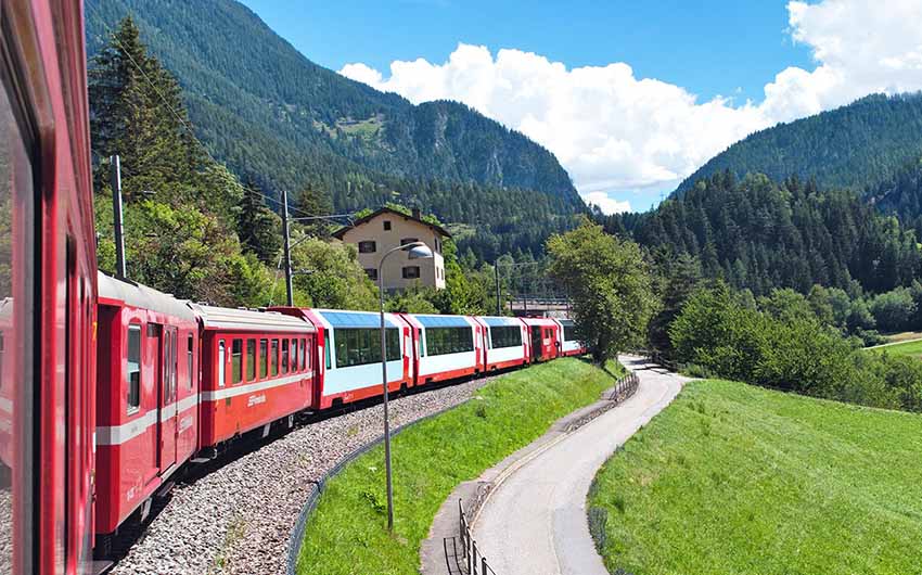 해발 2,253m로 세계에서 가장 높은 기차역 오스 피치오 베르니나(Ospizio Bernina)를 지나갑니다. 해발 1.048m에 세워진 65m 높이의 유서 깊은 고가교 란트바서(Landwasser Viaduct)도 통과합니다.