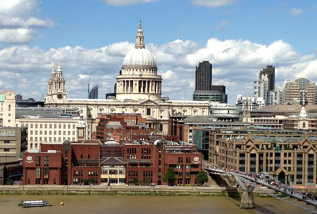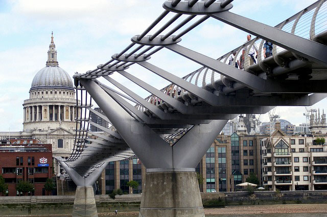 밀레니엄 브리지를 중심으로 북쪽에는 세인트 폴 대성당이 있으며 남쪽에는 테이트 모던이 있습니다.