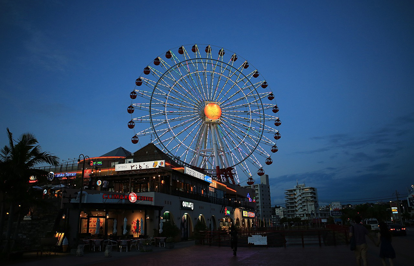오키나와에 오셨다면 그냥 지나칠 수 없는 아메리칸 빌리지는 오키나와의 대표 테마파크입니다. 오키나와의 전경을 감상할 수 있는 대관람차각 있으며 해질 무렵에 탑승하면 더욱 멋진 사진을 촬영할 수 있습니다.
