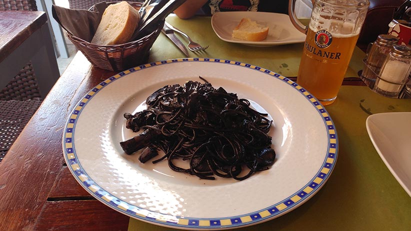 처음 보는 사람은 놀랄 수도 있지만 오징어 먹물을 넣어 검은색 윤기가 흐르게 한 것이 특징입니다. 베네치아에서만 맛볼 수 있는 북부 해안 지방의 전통 음식입니다. 스파게티뿐만 아니라 리조토에도 오징어 먹물을 넣으며 검은 색감과 달리 맛은 매우 좋습니다.