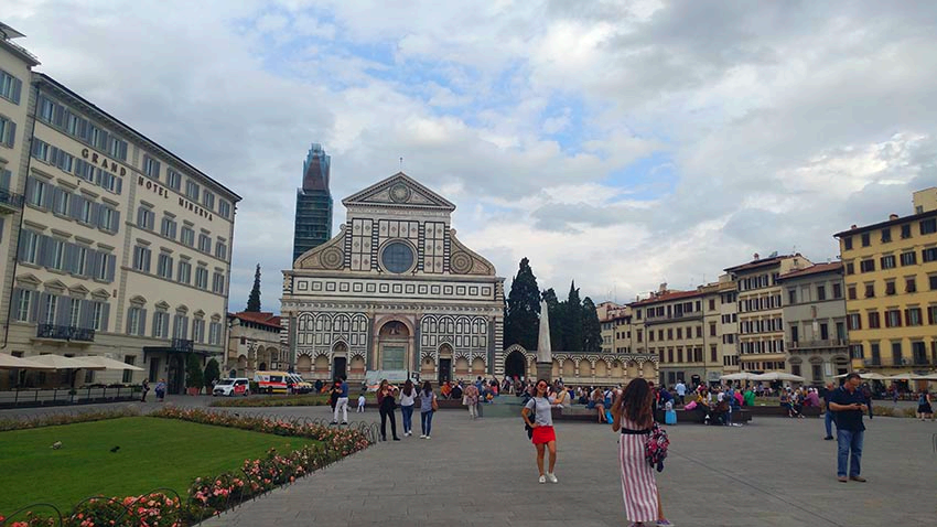 수도원 화장품으로도 유명한 산타 마리아 노벨라 성당은 산타 마리아 노벨라 역 가까이에 있습니다. 고딕과 르네상스 양식이 조화롭게 표현된 도미니코 수도회 성당입니다. 조금 투박해 보이는 뒷면과는 달리 전면 파사드는 흰색과 녹색 대리석으로 화사하게 장식되어 있습니다.