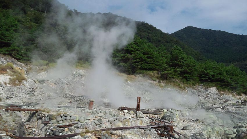 가장 유명한 것은 `벳푸의 지옥 순례'라고 불리는 지고쿠 온천 지역 순례입니다. 지하 250~300미터에서 100도씨 정도의 열탕과 분연이 솟아나는 것을 `지고쿠'라고 부릅니다.