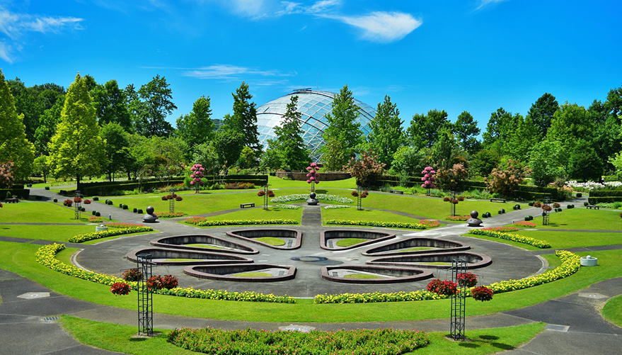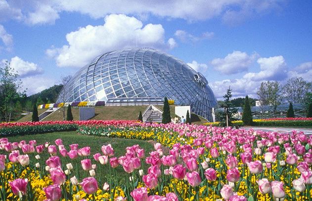 해발 1729m의 다이센을 배경으로 세워져 경치가 빼어난 것으로 유명하며 공원 중앙에는 거대한 돔 모양의 유리 온실이 있습니다.