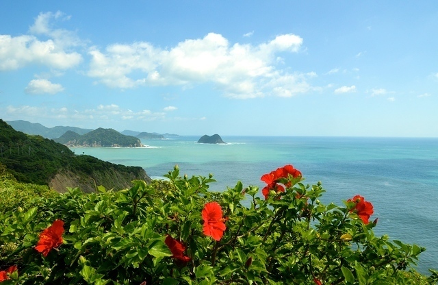 섬에는 아열대 식물이 무성하여 이국적인 풍경을 자아내며 해수욕을 즐길 수 있는 깨끗한 아오시마 해수욕장과 시라하마 해수욕장이 있습니다.