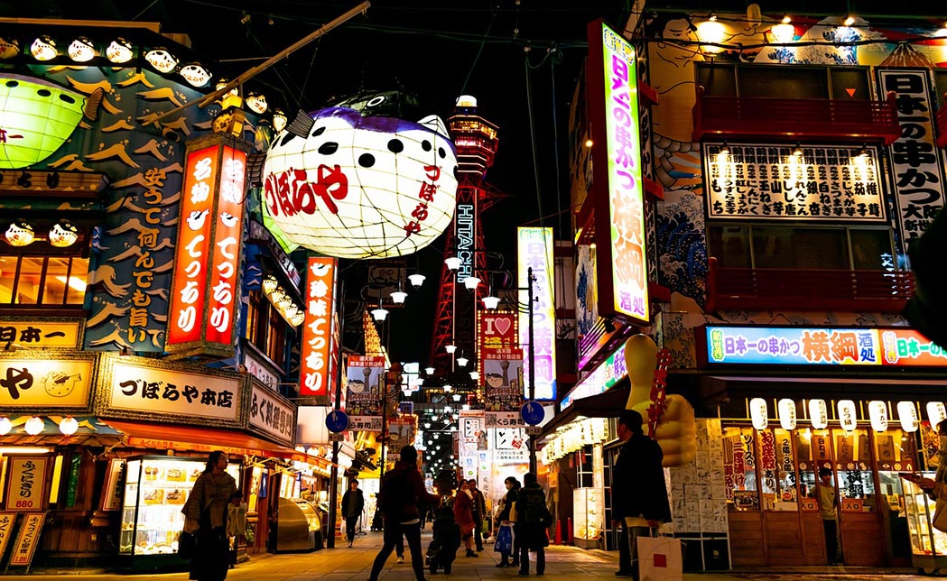 서민 적인 유흥과 오락 지구인 난바와 신사이바시, 도톤보리 지역은 골목 골목 마다 맛집이 즐비해 있습니다. 특히 도톤보리에는 오사카의 명물 타코야키 가게와 복어 요리점, 게요리점과 라멘 전문점이 밀집해 있으며 가격도 저렴합니다.