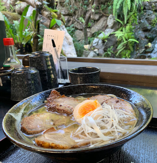 돼지뼈나 가다랑어 등을 담백하게 우려낸 뜨끈한 육수 맛이 일품이며 두꺼운 면위에 다양한 토핑이 올라가서 보기에는 우동과 비슷합니다. 인심은 매우 후한 편으로 가격도 저렴하고 양도 푸짐해서 큰 사이즈는 웬만하면 주문하지 않는 것이 좋습니다.