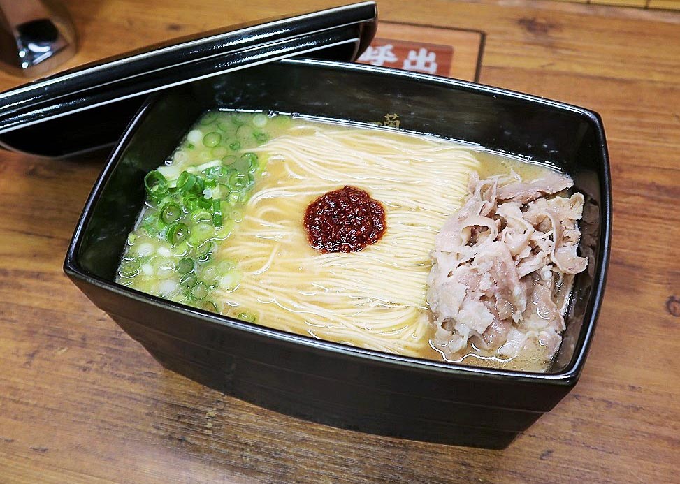 하카타 라멘 중에는 면발이 굵은 것이 특징이며 국물도 돈고츠 라멘보다는 걸쭉함이 덜합니다. 깔끔한 맛을 즐기고 싶다면 생선으로 국물을 우려낸 소유 라멘도 아주 맛이 좋습니다. 텐진 역 지하상가 6번 출구에서 도보로 1분 거리입니다.