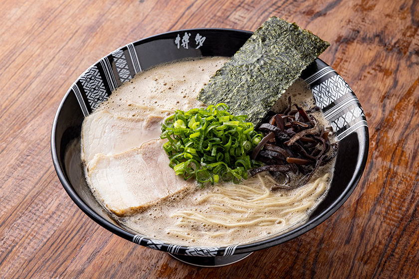 돼지의 뼈를 24시간 동안 걸쭉해질 때까지 고아낸 국물에 가는 면발을 넣는 것이 특징인 하카타의 명물 나가하마 라멘의 원조입니다.