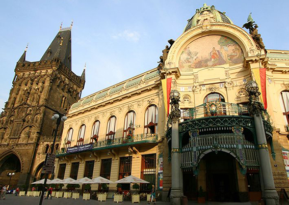 화약탑 옆에 있으며 건물 전체가 아르누보 양식으로 만들어진 시민 회관의 1층에 자리한 아름다운 카페이자 레스토입니다.