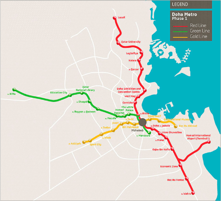카타르 도하의 지하철은 총 3개의 노선으로 운행되며 색상으로 구분됩니다. 레드라인, 그린라인, 옐로 라인 이렇게 3가지 색상으로 총 37개의 정거장으로 심플합니다.