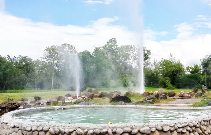 싼깜팽 온천은 넓은 공원 형태로 만들어져 있으며 공우너 중간에 온천수가 뿜어져 나오는 곳에서는 삶은 계란을 맛볼 수도 있습니다.