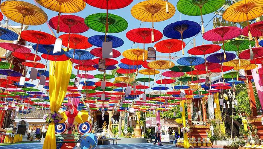 치앙마이 시내에서 20분 정도 떨어진 곳에 있는 버쌍이라는 우산 마을로 종이 공예로 아름다운 색상의 우산을 만드는 공예마을입니다.
