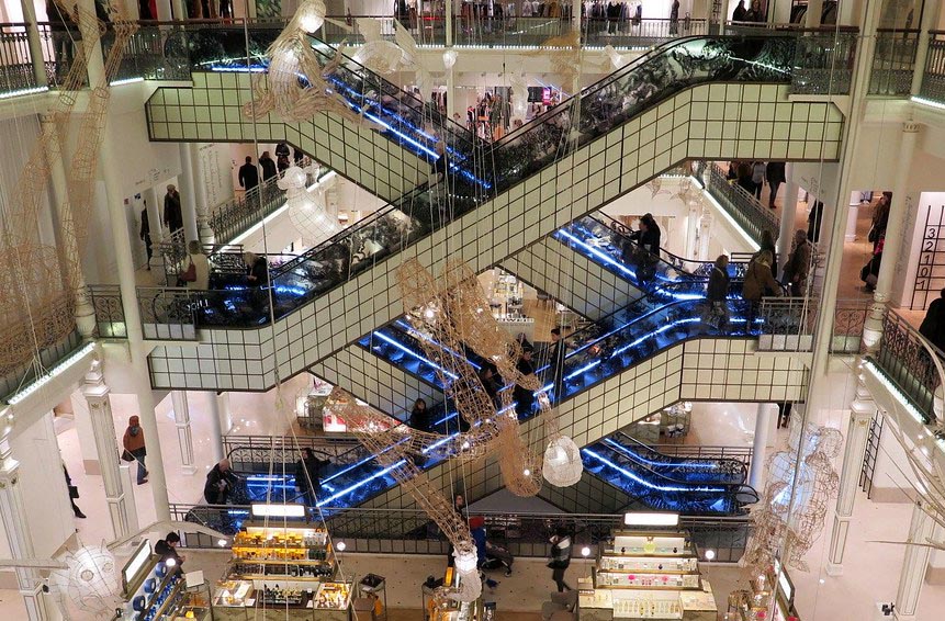 파리 오스만 대로에 위치해 있으며 1912년에 오픈했습니다. 하루 평균 30만 명이 이상이 방문하는 파리의 대표 쇼핑 메카이며 명품 브랜드를 비롯해 75,000여 개의 매장이 라파예트 내부를 가득 채우고 있습니다.