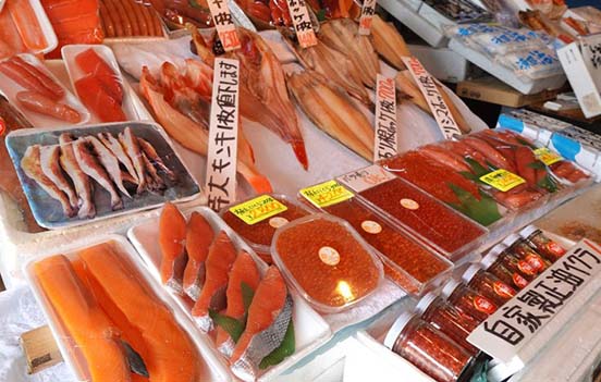 하코다테 역 서쪽 출구 바로 옆에 있는 아침시장은 현지인뿐만 아니라 많은 여행객이 찾아오는 하코다테에서 가장 유명한 시장입니다.