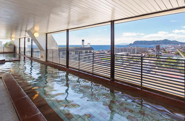 11층 옥상에 있는 대욕탕에 몸을 담근채 하코다테 시내의 전경을 내려다볼 수 있는 전망 좋은 온천입니다. 30m 길이의 전면이 유리창이 달린 운카이와 정원이 딸린 노천탕이 있습니다.