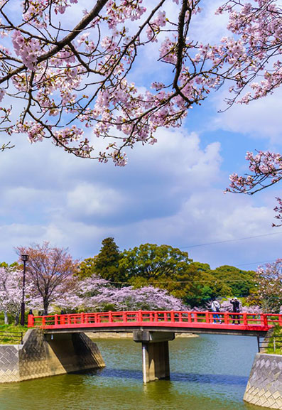 나카마시 하부공원 : 후쿠오카에서 한시간 거리에 잇는 나카마시 하부공원은 일본 현지인들이 즐겨 찾는 숨겨진 벚꽃 명소입니다. 공원 내부에는 커다란 호수가 있으며 그 위에 놓인 붉은색 다리가 만개한 벚꽃과 어우러지면 동화 같은 풍경을 자아냅니다. 다른 벚꽃 명소와는 달리 호수 위에서는 유유자적 배를 타고 벚꽃 놀이를 할 수 있어서 더욱 인기가 많습니다.