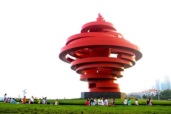 해변을 따라 걷기 좋은 5.4 광장도 칭다오를 방문한다면 꼭 가봐야 하는 곳 중 하나입니다. `5월의 바람'으로 불리는 붉은색 조형물이 있는 곳으로 칭다오 여행책자마다 등장하는 사진 스팟입니다.